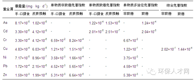 表9 儿童健康风险评价结果