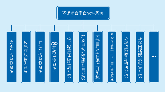 目前已研发废水在线监测系统、废气在线监测系统、油烟在线监测(监控)系统、VOCs在线监测系统、扬尘噪声在线监测系统、水质自动站在线监测系统、空气自动站在线监测系统、污染源企业“一企一档”管理系统、环境监察移动执法系统、环保网络民意收集系统等多个应用子系统。